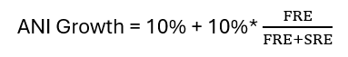 Under this framework, pre-tax ANI = FRE + SRE. Apollo plans to grow FRE at ~20% (or slightly higher) and SRE at 10%, and has done accordingly. What is the projected ANI growth?