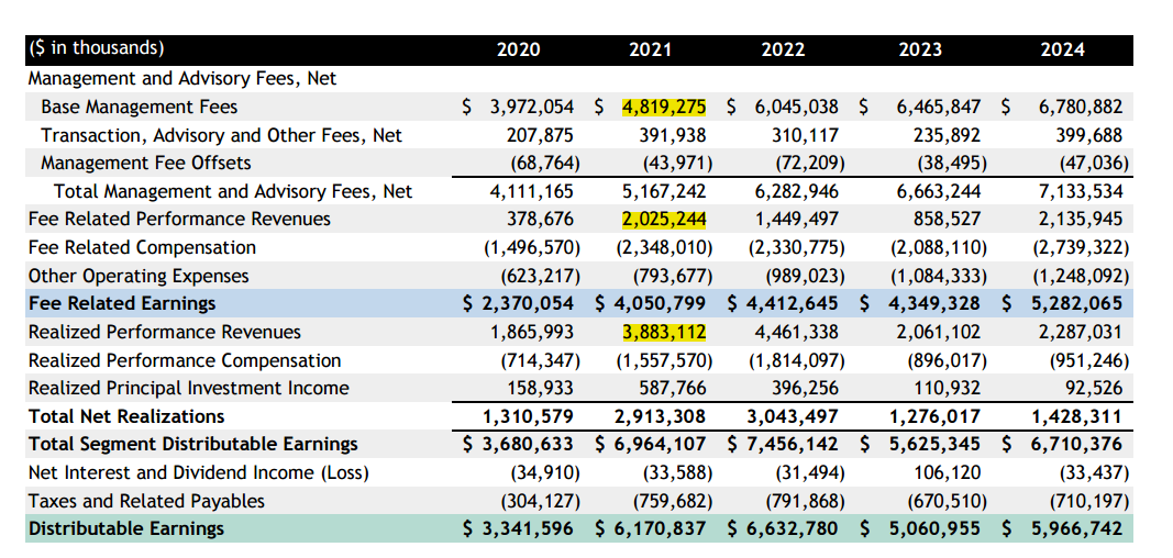 One final caveat: Blackstone’s FRE includes a significant portion of fee-related performance revenues, making it difficult to compare directly with the management-fee-centric FRE reported by other alt managers.